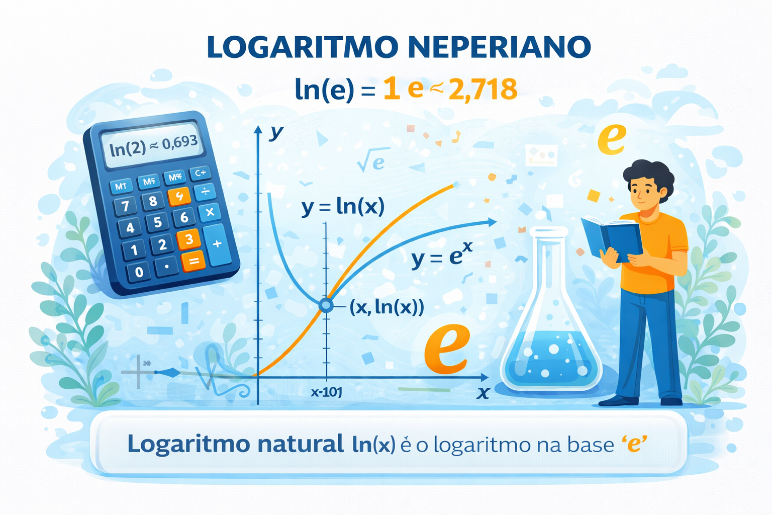 O logaritmo neperiano, também chamado de logaritmo natural, é um tipo especial de logaritmo que utiliza como base o número e, uma constante matemática aproximadamente igual a 2,71828. Esse número aparece em diversos fenômenos naturais, como crescimento populacional, processos de decaimento e modelos de juros compostos, o que torna o logaritmo neperiano especialmente importante em ciência e matemática.