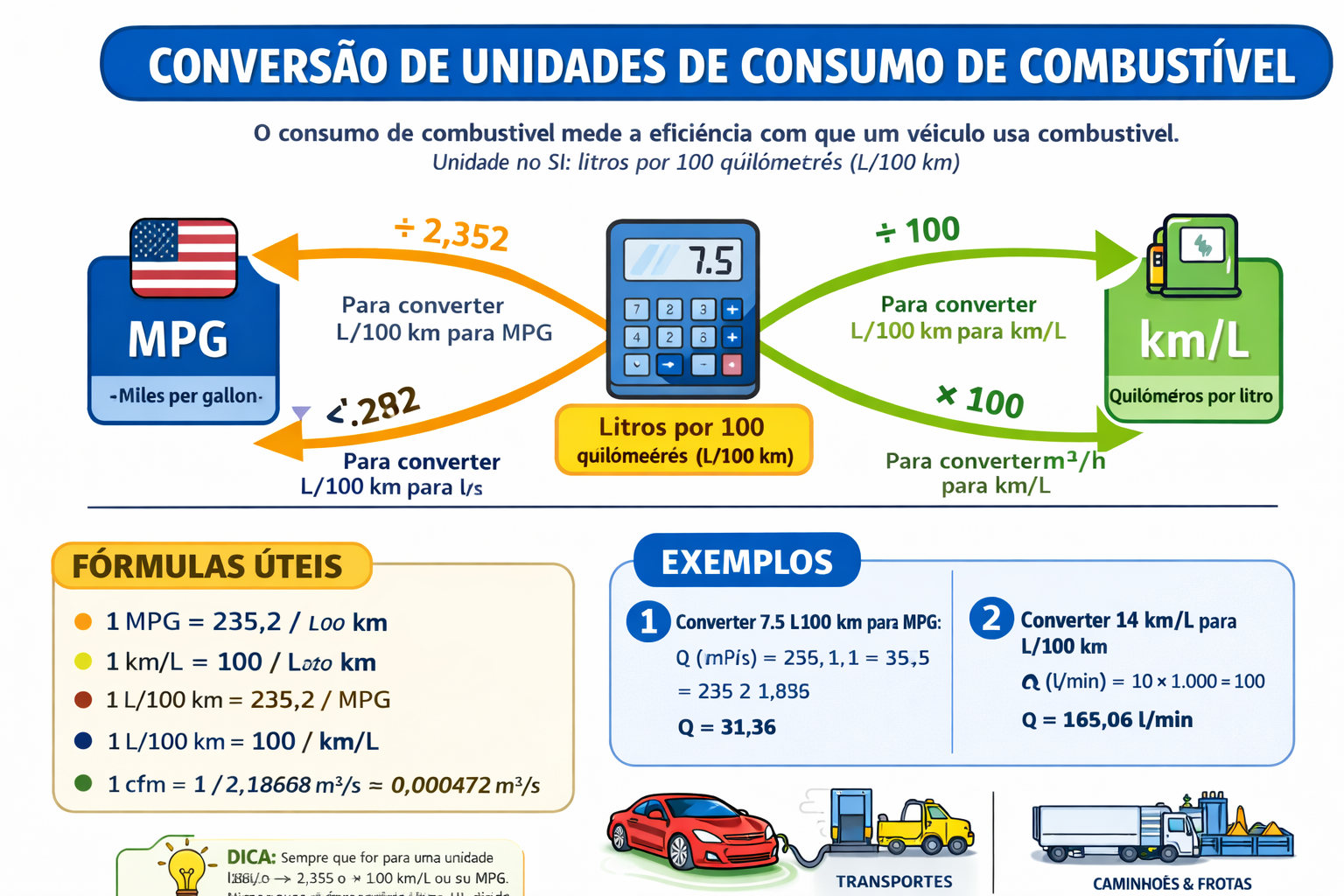 Com estas informações, você poderá converter facilmente consumo de combustível entre km/l, l/100 km e mpg, garantindo comparações precisas entre veículos e padrões internacionais.